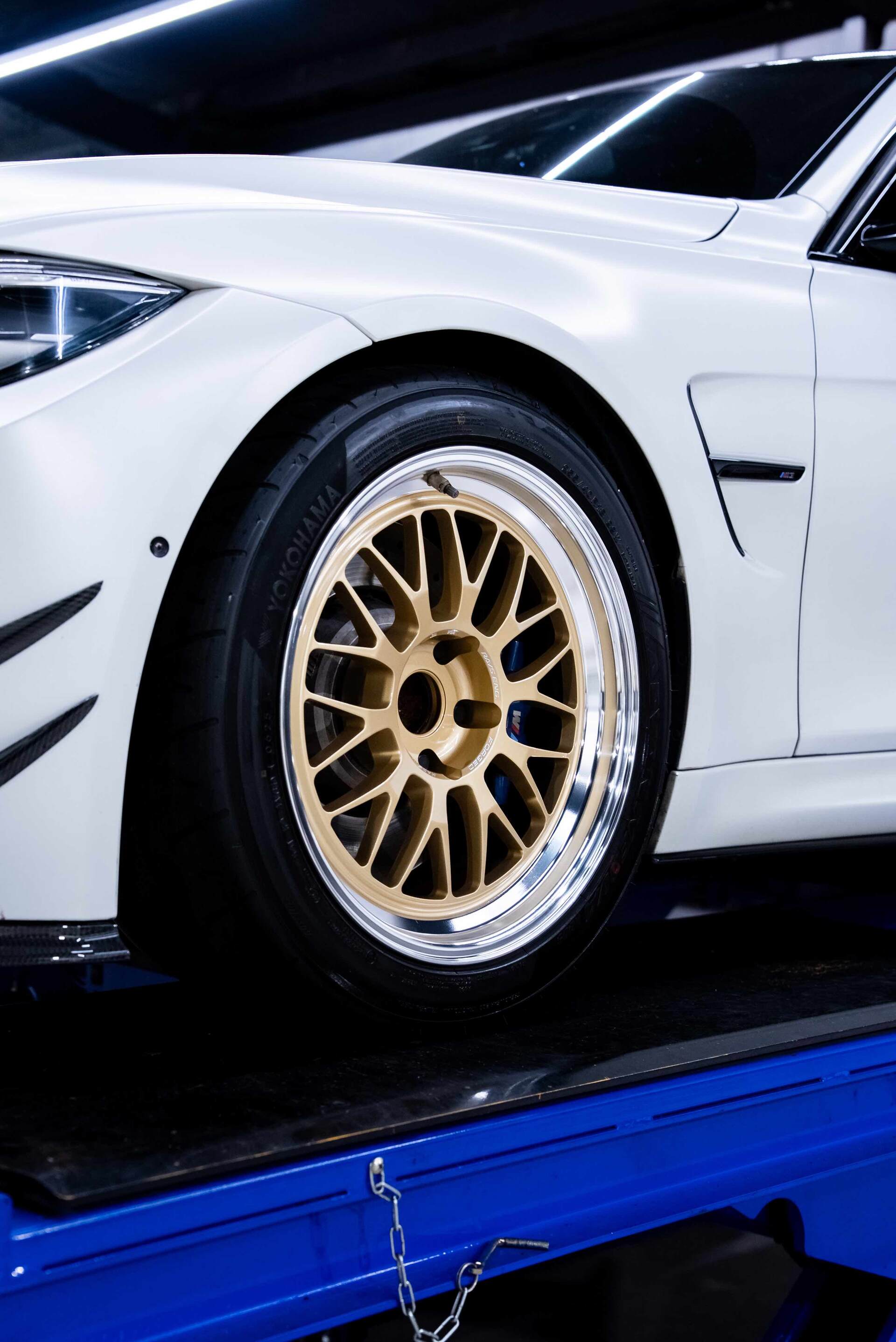The specifications enable sophisticated forged monoblock wheels with orthodox cross spokes to also have outstanding rim depths. These wheels are a special type only RAYS can provide. The traditional basic taste is accented by the machining logos using RAYS patented technology A.M.T. on the outer edge to effectively indicate that they are the latest model.