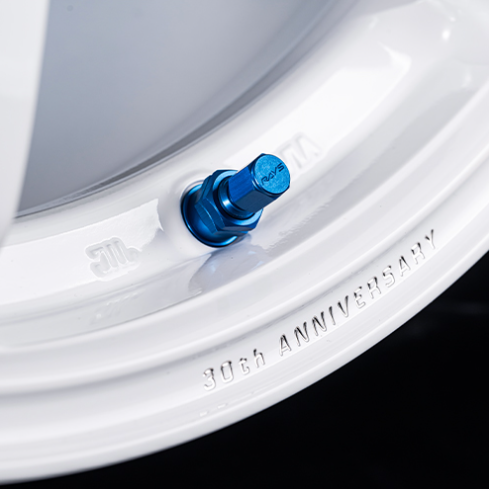 The 30th Anniversary Model is based on this TE37 SAGA S-plus, carrying forward the unchanging core philosophy of the TE37 while embodying an homage to the original, first-generation model. By layering iconic spoke decals and color schemes from the past onto a modern TE37 that meets the latest strength standards and safety margins, this model transcends mere nostalgia, emerging as an anniversary model that exists firmly in the present.